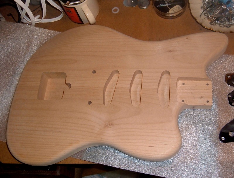 Coming together well. I'm half tempted to just clear coat the body to make it reminiscent of the stripped Jag I once got at a pawn shop. Loved that guitar. The neck is an eBay Crafted In Japan neck in very nice shape from one of my other jazzmasters. I'll have a USA Custom Guitars neck when this is done.
